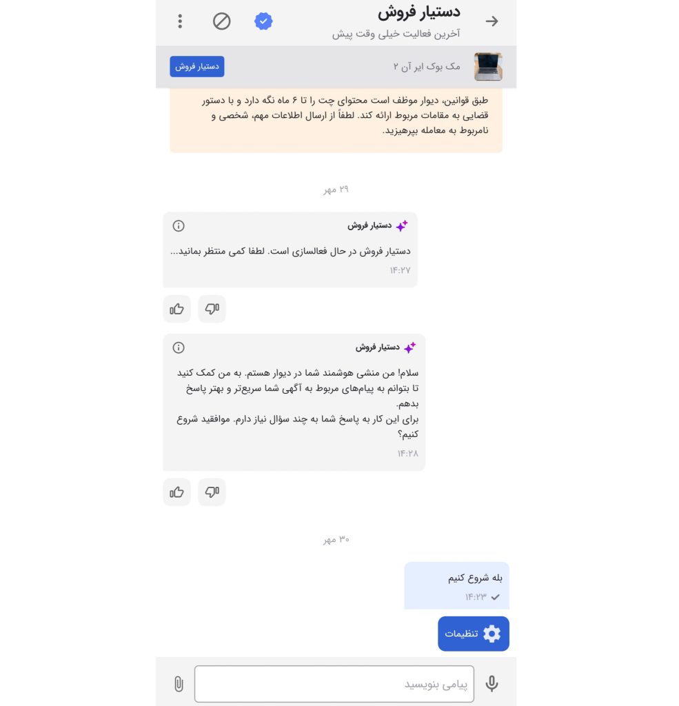 • هماهنگی‌های فروش: تنظیم زمان بازدید، پاسخ به سوالات مربوط به جزئیات کالا و پیگیری مشتریان بالقوه به صورت خودکار انجام می‌شود.