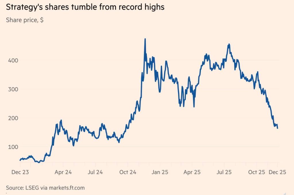 سهام شرکت استراتژی، بزرگترین دارنده بیتکوین در جهان، پس از هشدار این شرکت درباره احتمال زیان ۵.۵ میلیارد دلاری در صورت عدم بهبود قیمت بیتکوین، بیش از ۱۱ درصد کاهش یافت. افت شدید ارزش بیتکوین از ۱۲۶ هزار به ۸۶ هزار دلار، مدل تأمین مالی این شرکت به رهبری مایکل سیلور را تحت فشار قرار داده است.