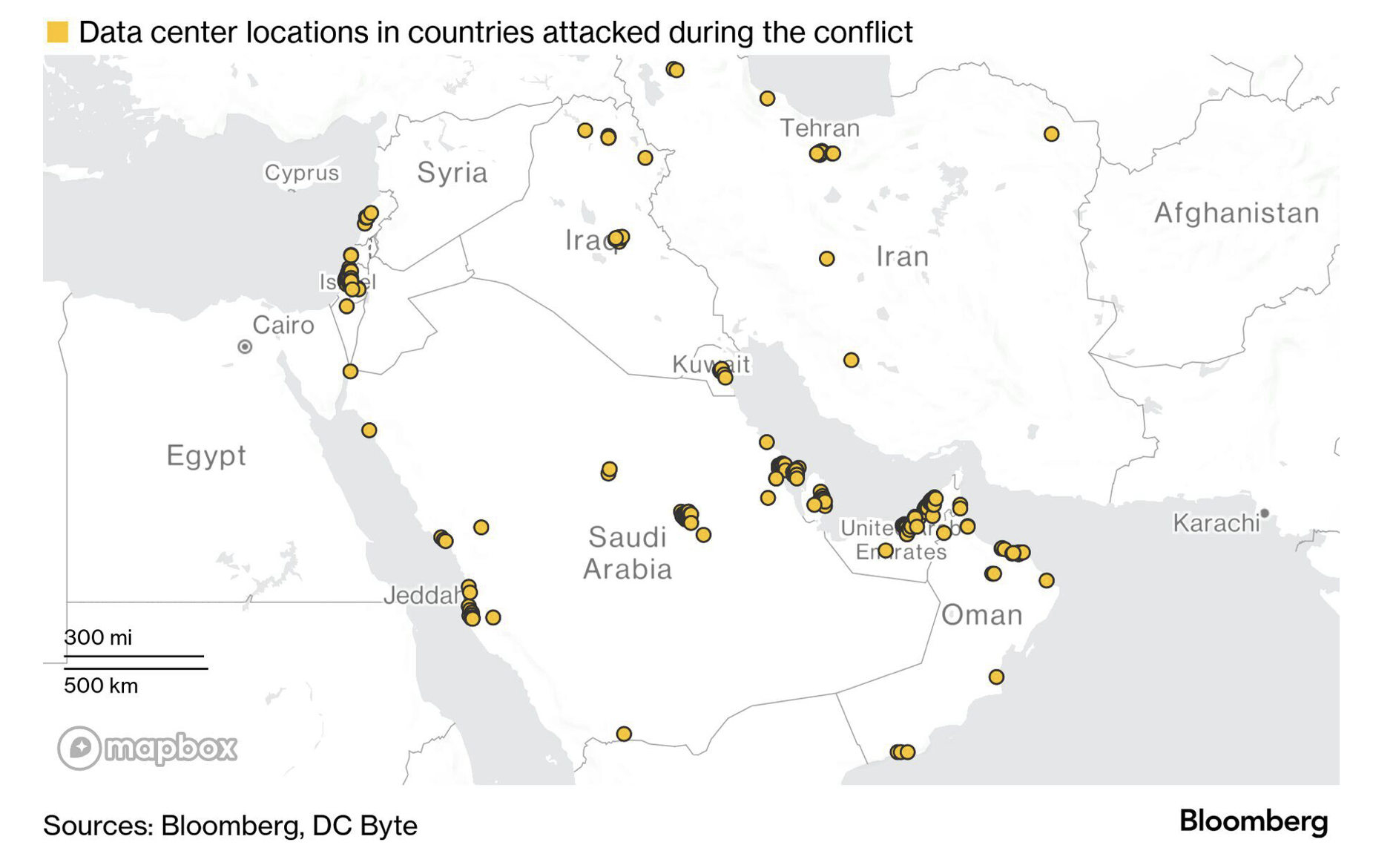 حملات پهپادی به سه مرکز داده متعلق به شرکت آمازون در امارات متحده عربی و بحرین آسیب رساندهاند. همچنین به نوشته بلومبرگ، اسرائیل و ایالات متحده دستکم دو مرکز داده در تهران را هدف قرار دادهاند.